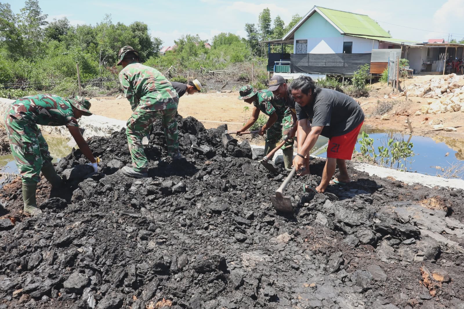 Kegiatan gotong royong ini menjadi bukti nyata kemanunggalan TNI dengan rakyat. Tanpa mengenal lelah, personel Satgas TMMD dan masyarakat saling bekerja sama guna mempercepat penyelesaian sasaran fisik di lapangan.