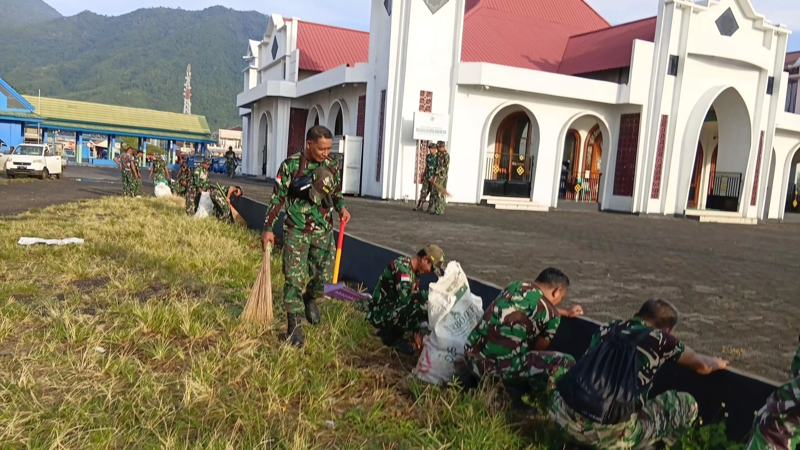 Kegiatan tersebut dilakukan dengan membersihkan seluruh area masjid, mulai dari halaman, tempat wudhu, hingga bagian dalam masjid. Dengan penuh semangat kebersamaan, personil TNI bersama pengurus masjid bahu-membahu mengangkat sampah, menyapu, serta merapikan lingkungan sekitar agar terlihat bersih dan nyaman.