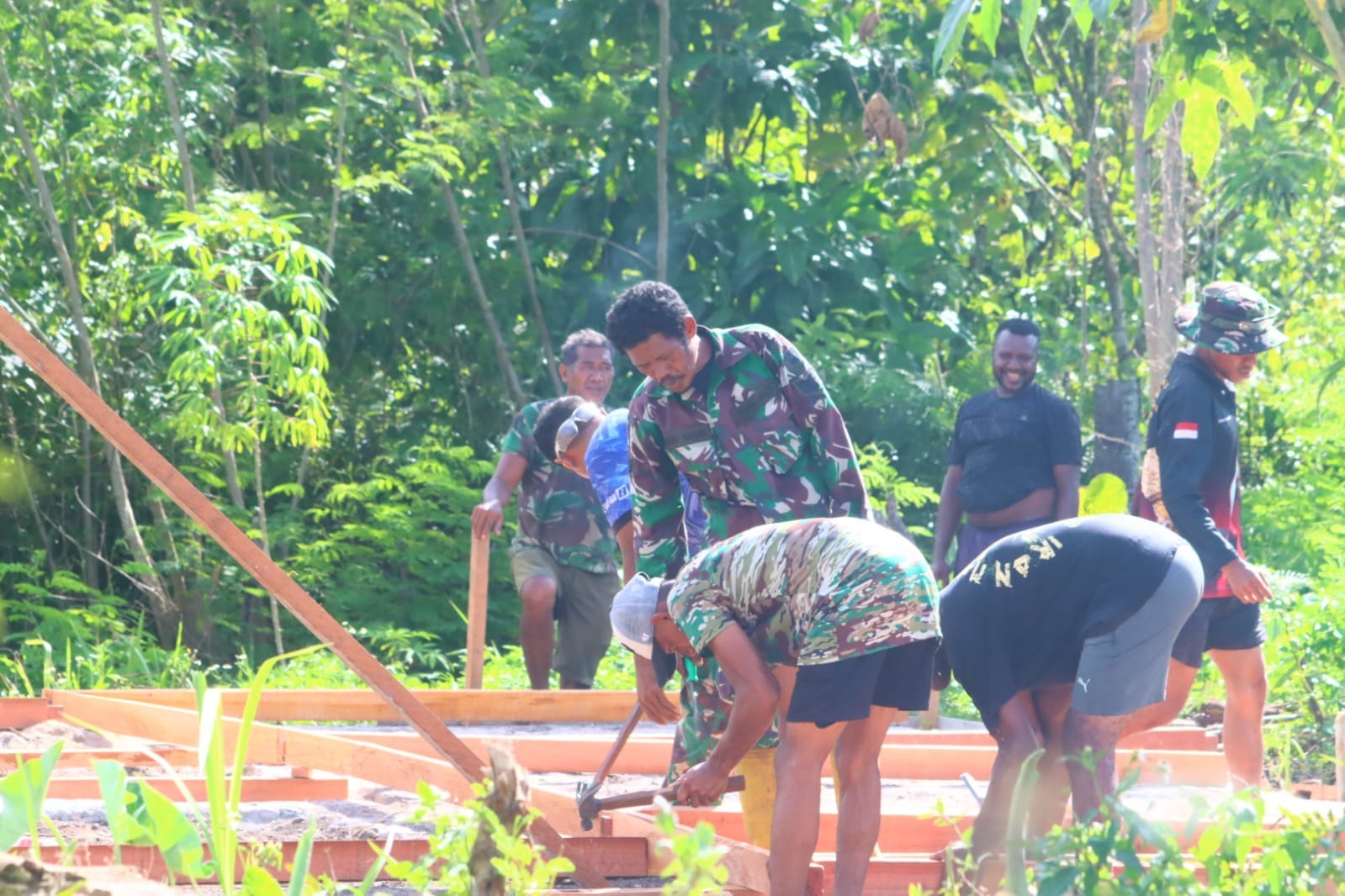 ‎Semangat gotong royong juga ditunjukkan oleh Yulianus yang turut terlibat langsung dalam proses pembangunan rumahnya. Kebersamaan ini menjadi wujud nyata kemanunggalan TNI dengan rakyat yang terus terjaga.